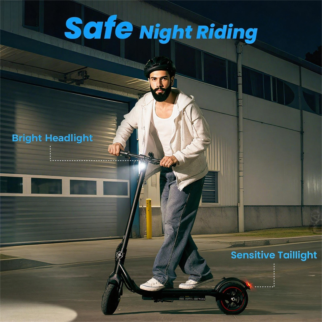 Safety is prioritized with dual braking (rear disc + E-ABS) for instant stops, UL2272-compliant electronics, and bright LED lights for night visibility. Supporting riders up to 264 lbs (14+ years), the scooter features 10-inch pneumatic tires that absorb shocks from rough roads. Recharging is a breeze with a universal 100-240V adapter (full battery in 3-5 hours). As Walmart’s top-rated foldable electric scooter, it includes a 180-day warranty and 24/7 customer support. Upgrade your commute today—no traffic, no parking fees, just pure freedom!
