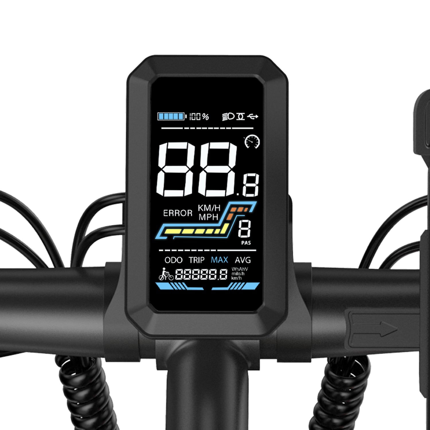 🌟【Professional 9-speed】Electric mountain bike equips with professional 9-speed shift gear, more precise and more sensitive. Easy operation center LCD intelligent display, which you can operate 5 levels of pedal assist and shows the speed, mileage, and power of the ride. Puncture-resistant 26"X4" fat tires provide a good grip and excellent shock absorption for greater durability.