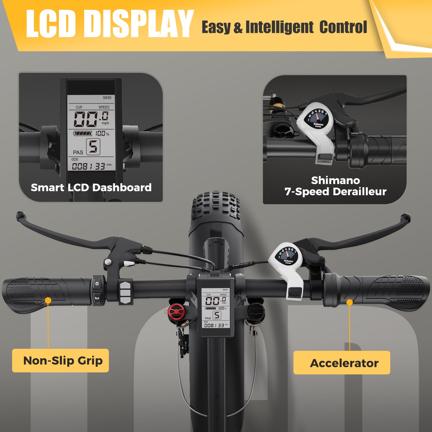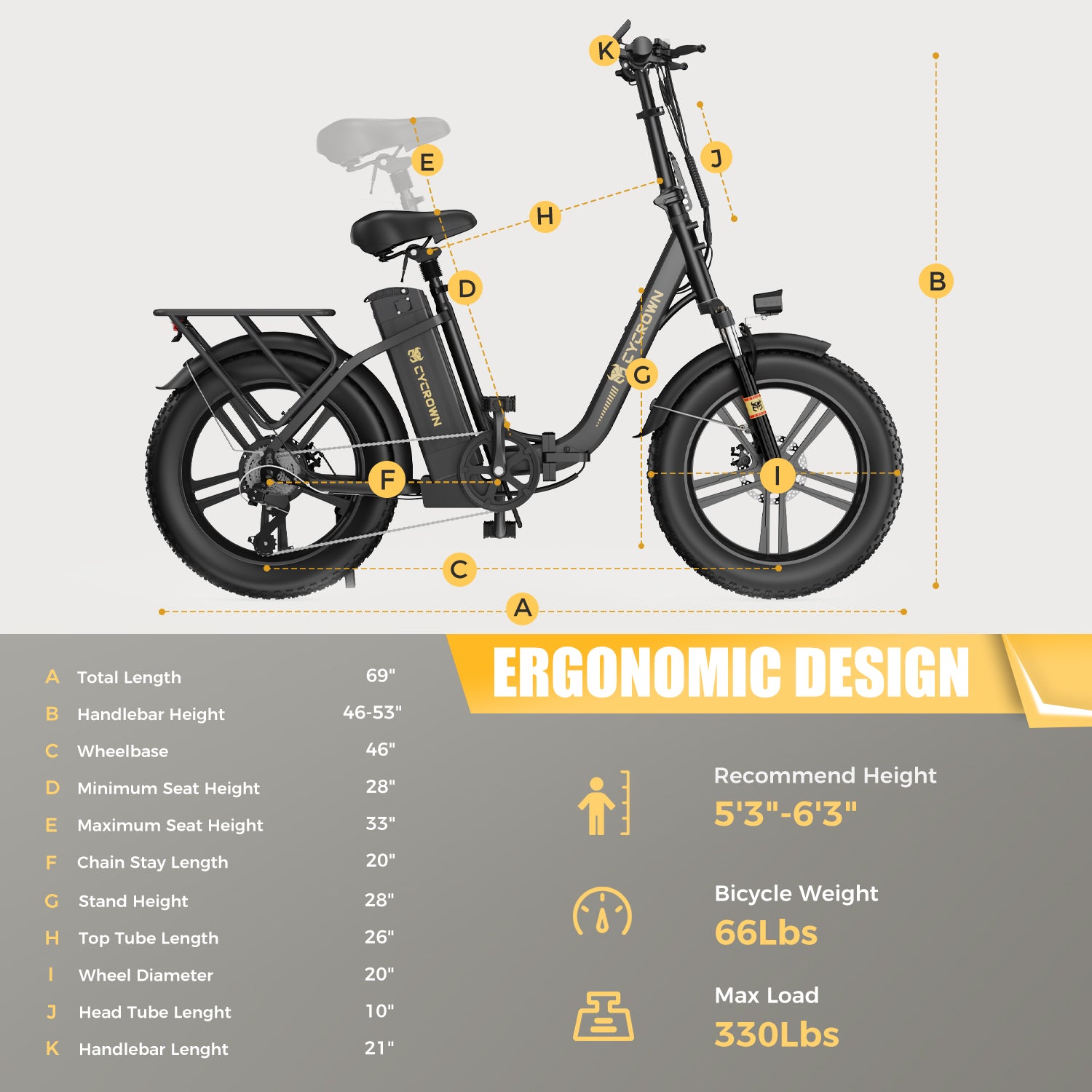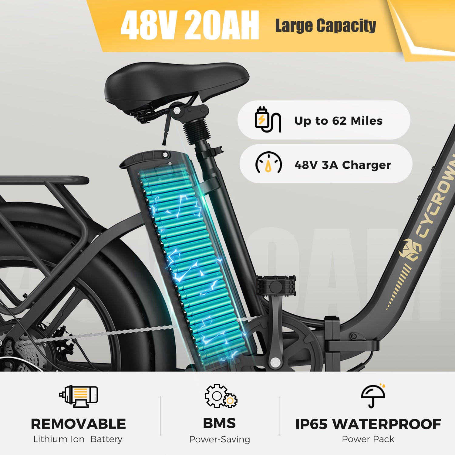 CYCROWN Free Electric Bike Adults, 2XFaster Charge, 48V 12.5AH/20AH Removable Battery, 20" x 4.0 Fat Tire Foldable Electric Bicycle, 750W(Rated:500W) Motor, Dual Shock Absorber, Shimano 7-Speed