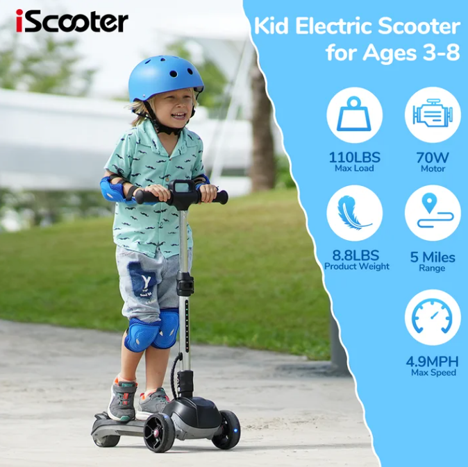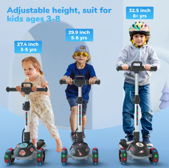 iScooter Electric Scooter for Kids Ages 3-6, Bluetooth Music Speaker, LED Light-up Wheels, Thumb Accelerator, 3-Adjustable Height Toddler Motorized Scooters, 3-Wheels Electric Scooter for Girls/Boys