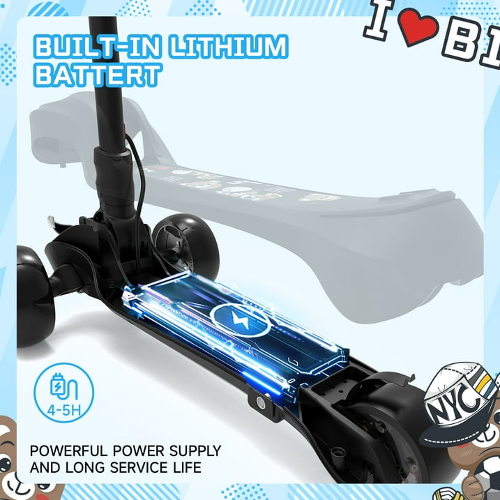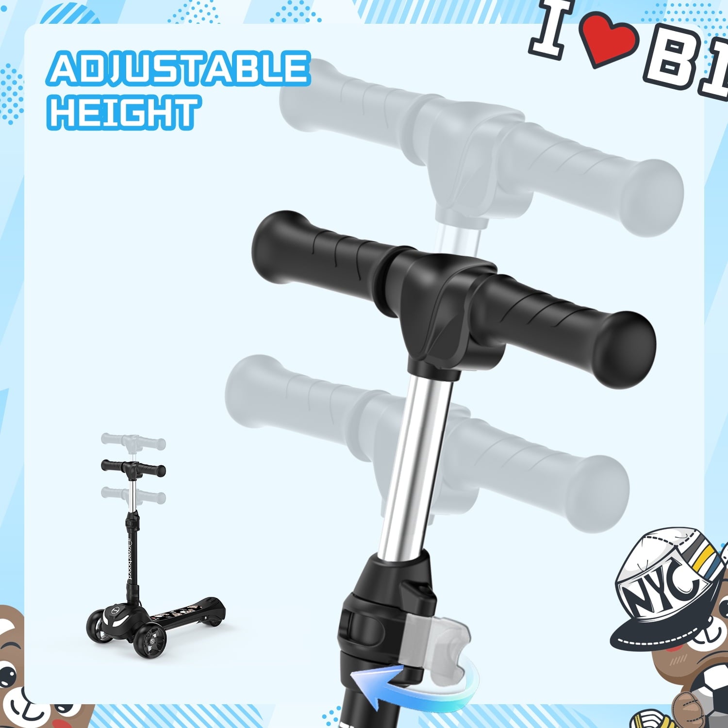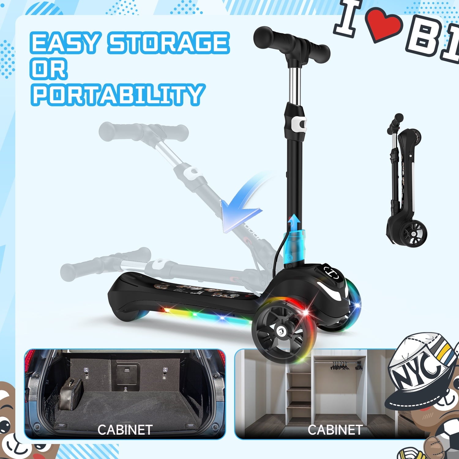 iHoverboard B1 Electric Scooter for Kids Ages 3+, LED Light-up Wheels and Pedal , 70W motor, Foldable and Height Aadjustable Toddler Motorized Scooters, Electric Scooter for Girls/Boys(Black)