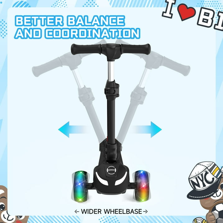 đăCool Pedal Lights, PU Lighted WheelsăThe scooter is equipped with front and rear lighted wheels and pedal lights, LED breathing lights, cool and at the same time improve the visibility and safety of night riding. Whether you are riding in a low-light environment or at night, your child rides more conspicuously. Improved visibility helps other pedestrians and vehicles notice your child better, thus increasing riding safety.