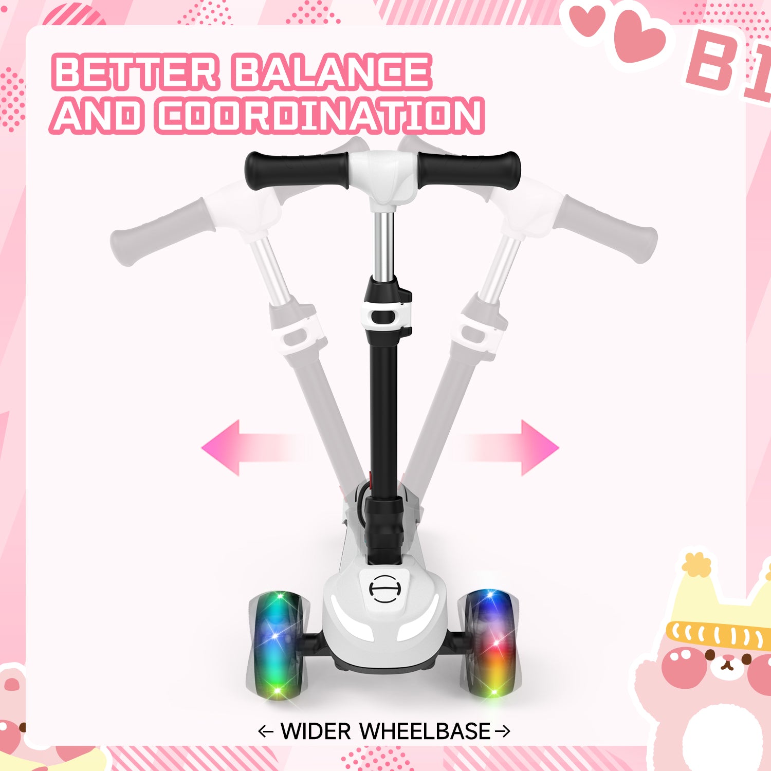 iHoverboard B1 Electric Scooter for Kids Ages 3+, LED Light-up Wheels and Pedal , 70W motor, Foldable and Height Aadjustable Toddler Motorized Scooters, Electric Scooter for Girls/Boys(White)