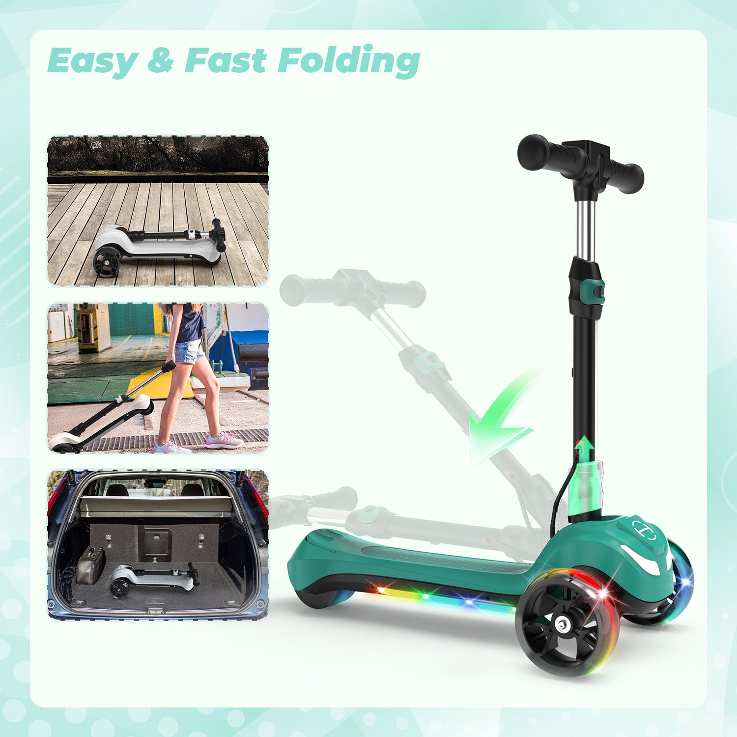 iHoverboard B2 Electric Scooter for Kids Ages 3+, LED Light-up Wheels and Pedal , 100W motor, Foldable and Height Aadjustable Toddler Motorized Scooters, Electric Scooter for Girls/Boys(Green)