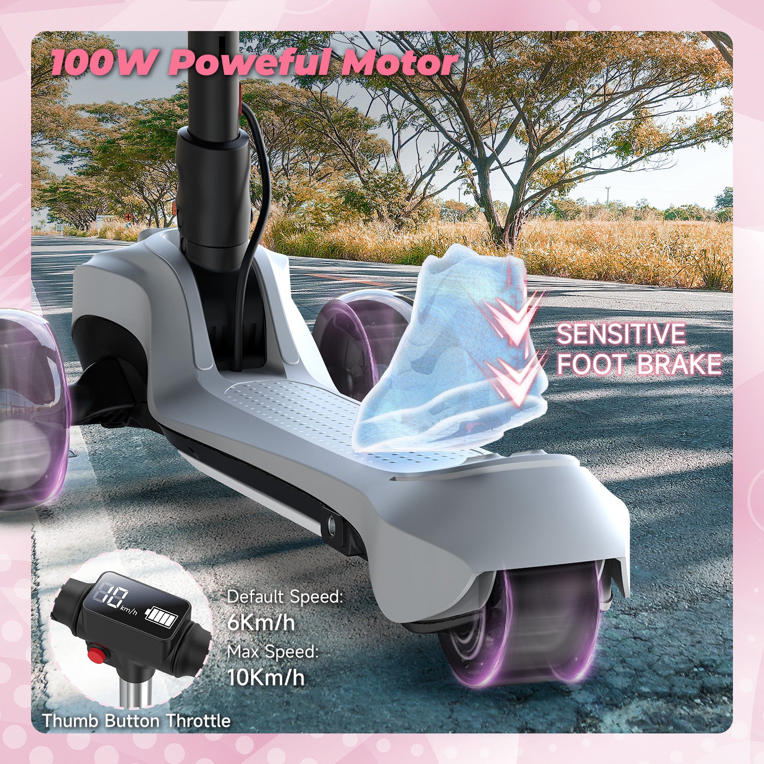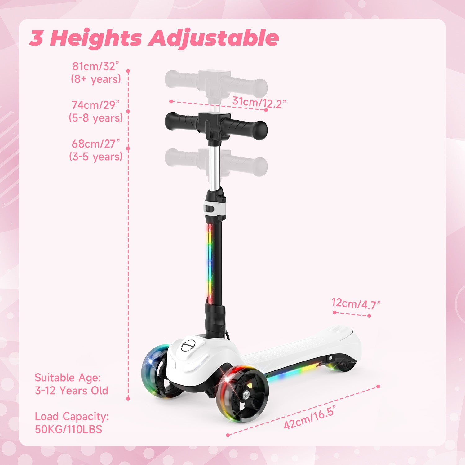 iHoverboard B2 Electric Scooter for Kids Ages 3+, LED Light-up Wheels and Pedal , 100W motor, Foldable and Height Aadjustable Toddler Motorized Scooters, Electric Scooter for Girls/Boys(White)