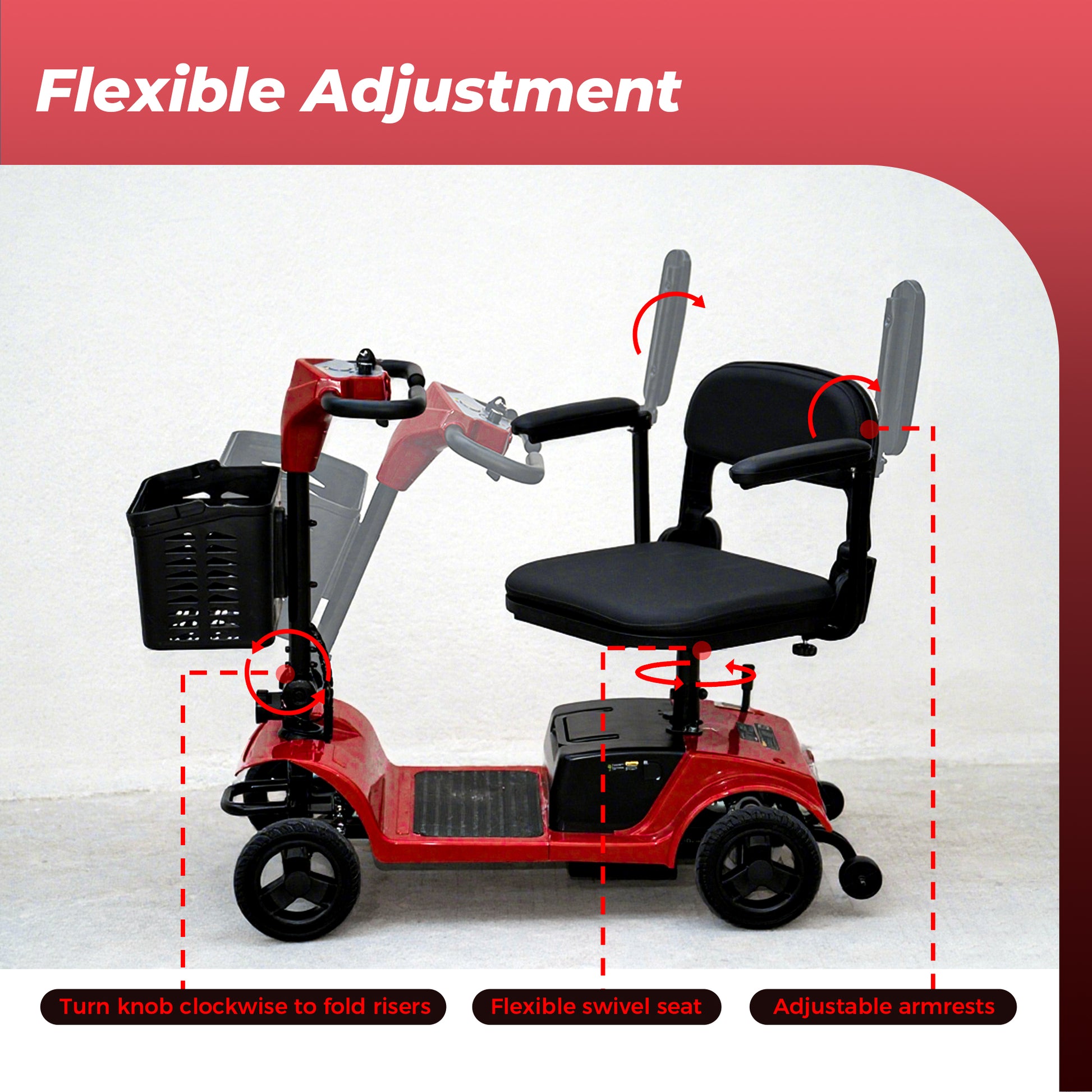 iScooter 4 Wheel Mobility Scooter for Seniors, Wider Seats & Foldale Electric Wheelchair Device for Travel, Upgraded for Superior Performance, Red