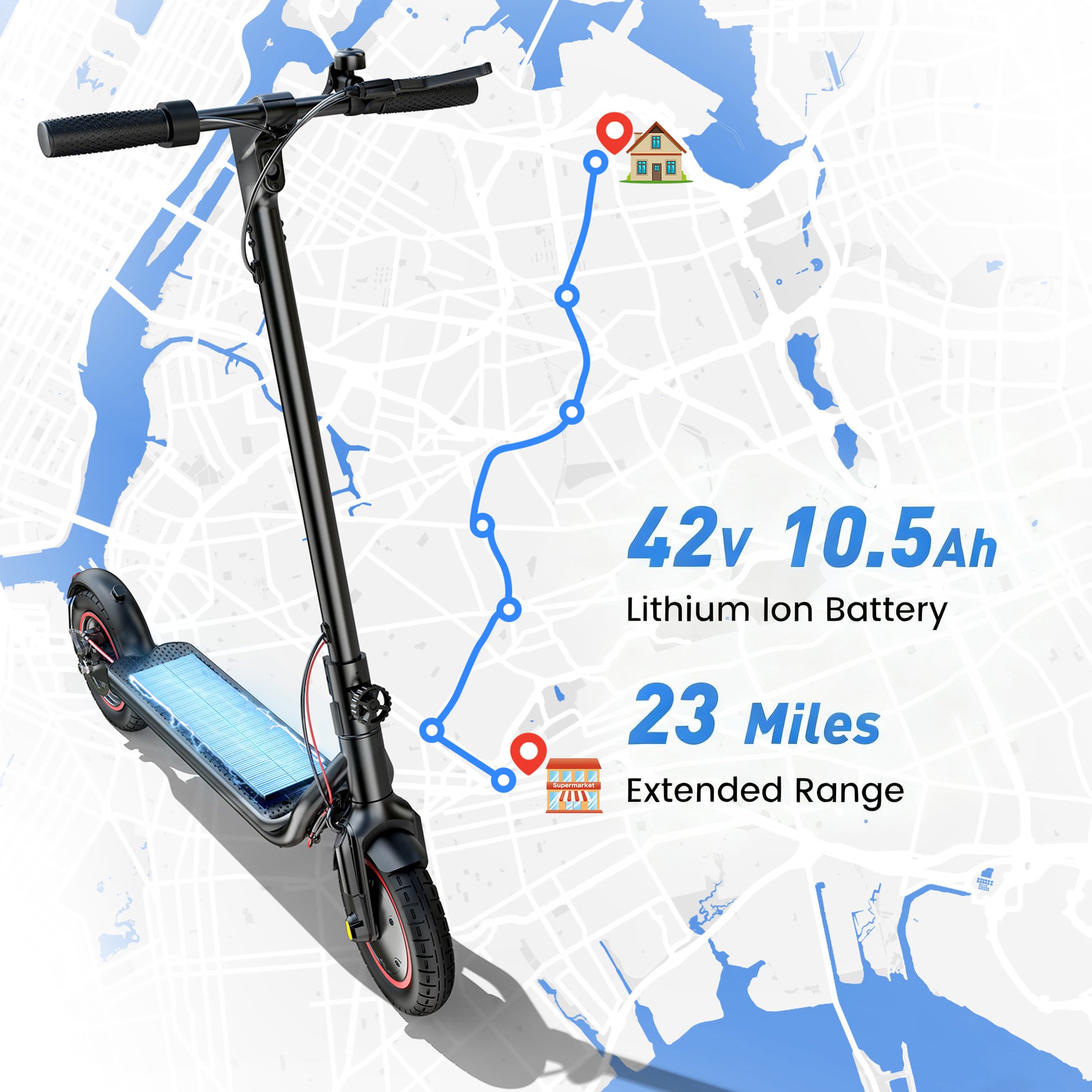 iScooter 500W Electric Scooter for Adults,23 Miles & 22 MPH Max,Extra-Wide Pedals, 10'' Pneumatic Tires Portable Folding Design,Commuting E-Scooter Christmas Gifts