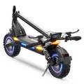 【Advanced Lighting and Safety Features】Ride confidently day or night with the scooter's advanced lighting system. It includes a powerful headlight with reflectors, turn signals at all four corners of the deck, blue ambient side lights, and a tail light that flashes during braking. The scooter is equipped with robust front and rear disc brakes, as well as hidden power cut-off brakes for dependable stopping power