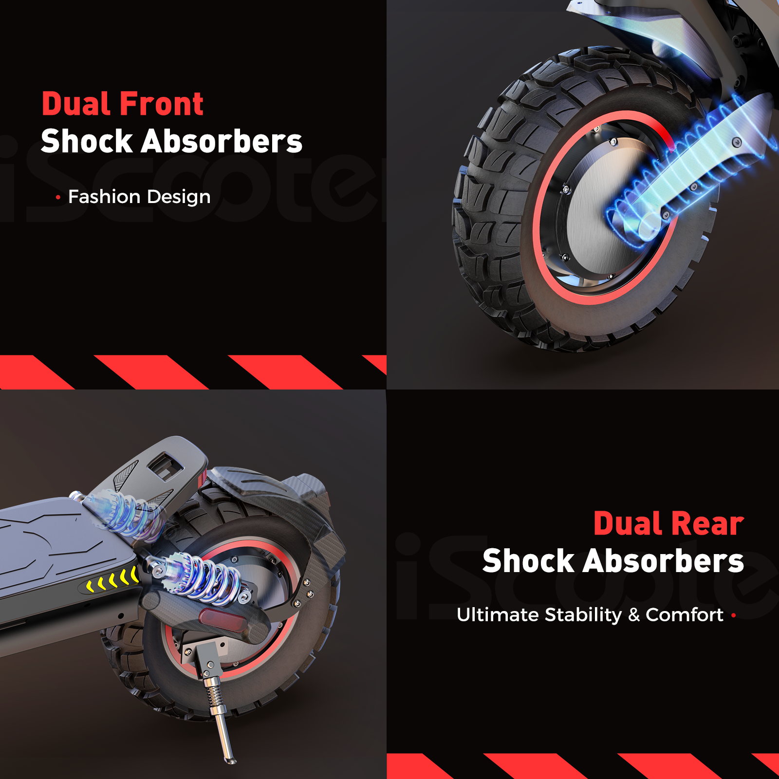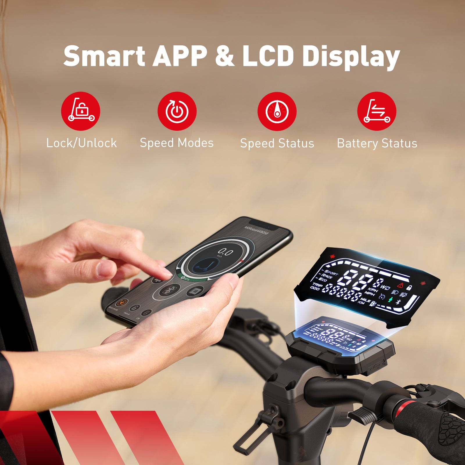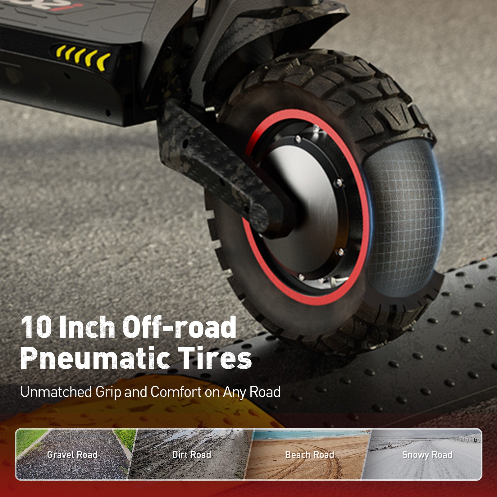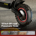 【Comfort, Control, and Durability】The 10-inch off-road pneumatic tires, along with front swingarm and rear spring suspension, provide excellent traction and shock absorption, making it perfect for various terrains. The Minirobot app allows you to monitor and customize your ride, including a lock function for added security. Built to support riders up to 330 lbs, this e-scooter is designed for durability and strength