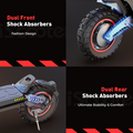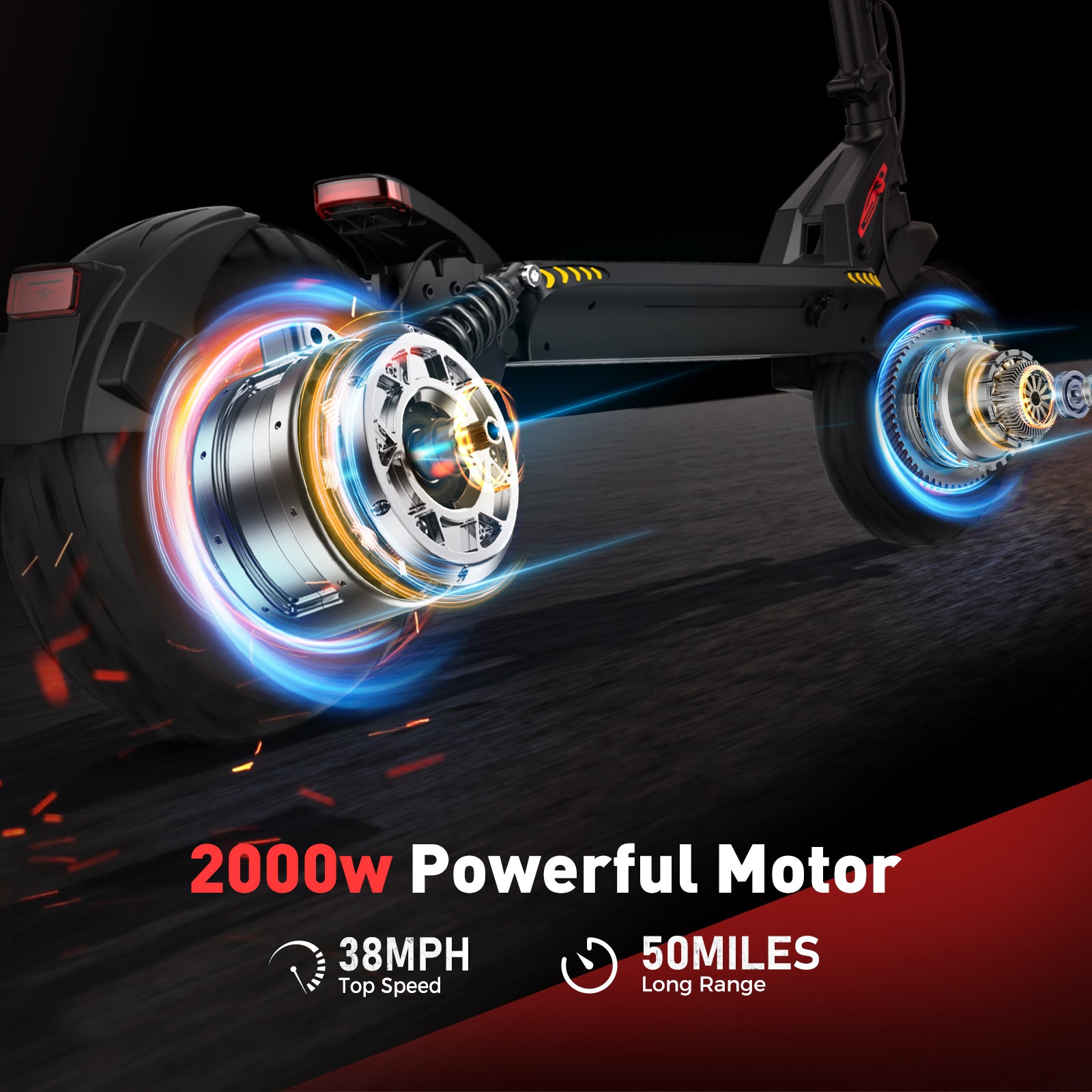 【Versatile Speed and Dual-Drive Electric Scooter】Experience unmatched versatility with the option to switch between single and dual-drive modes. The single drive allows speeds between 12 and 31 mph, while the dual-drive mode reaches thrilling speeds up to 38 mph. Powered by dual 1000W motors, this scooter effortlessly handles steep hills and tough terrains. It is UL2272 certified for safety