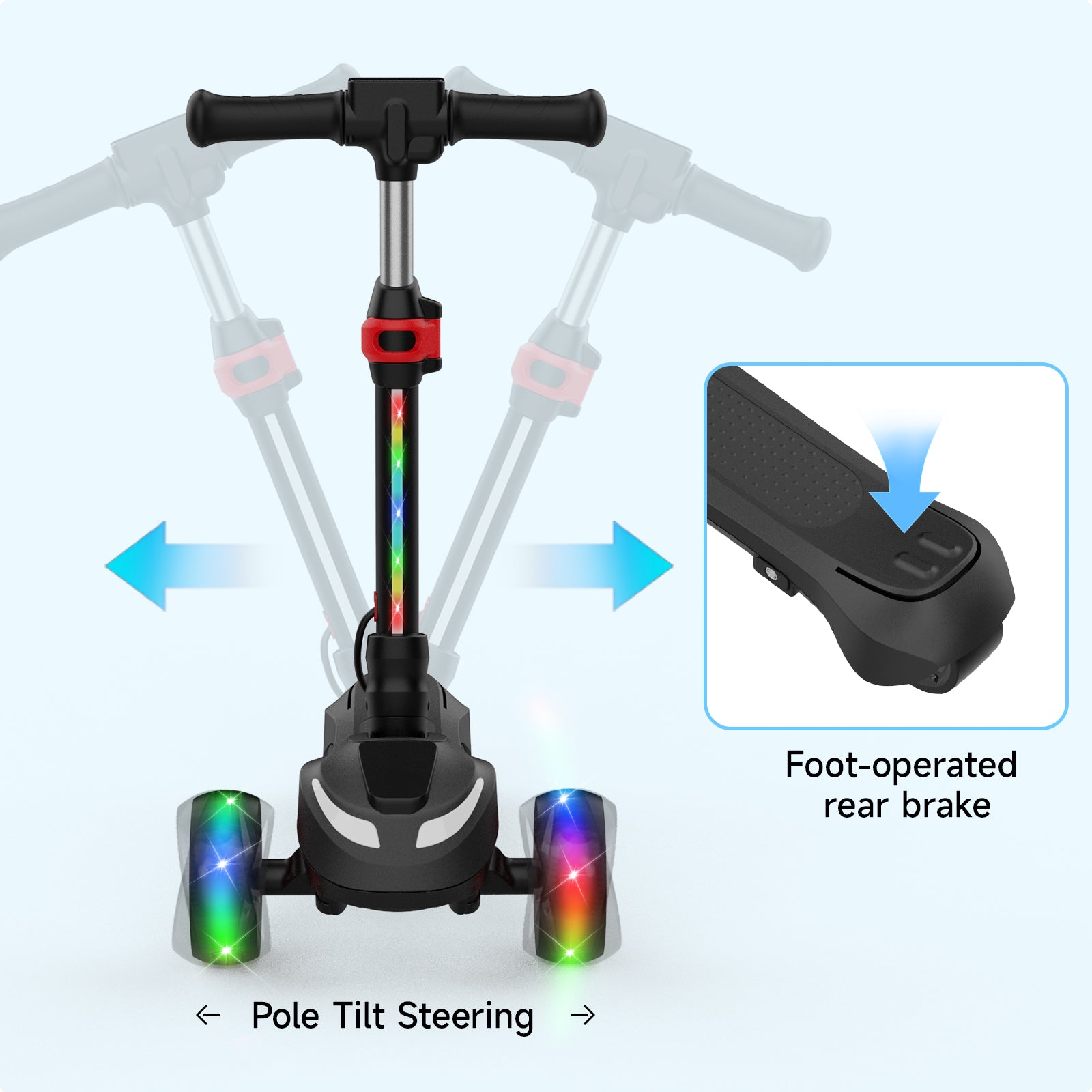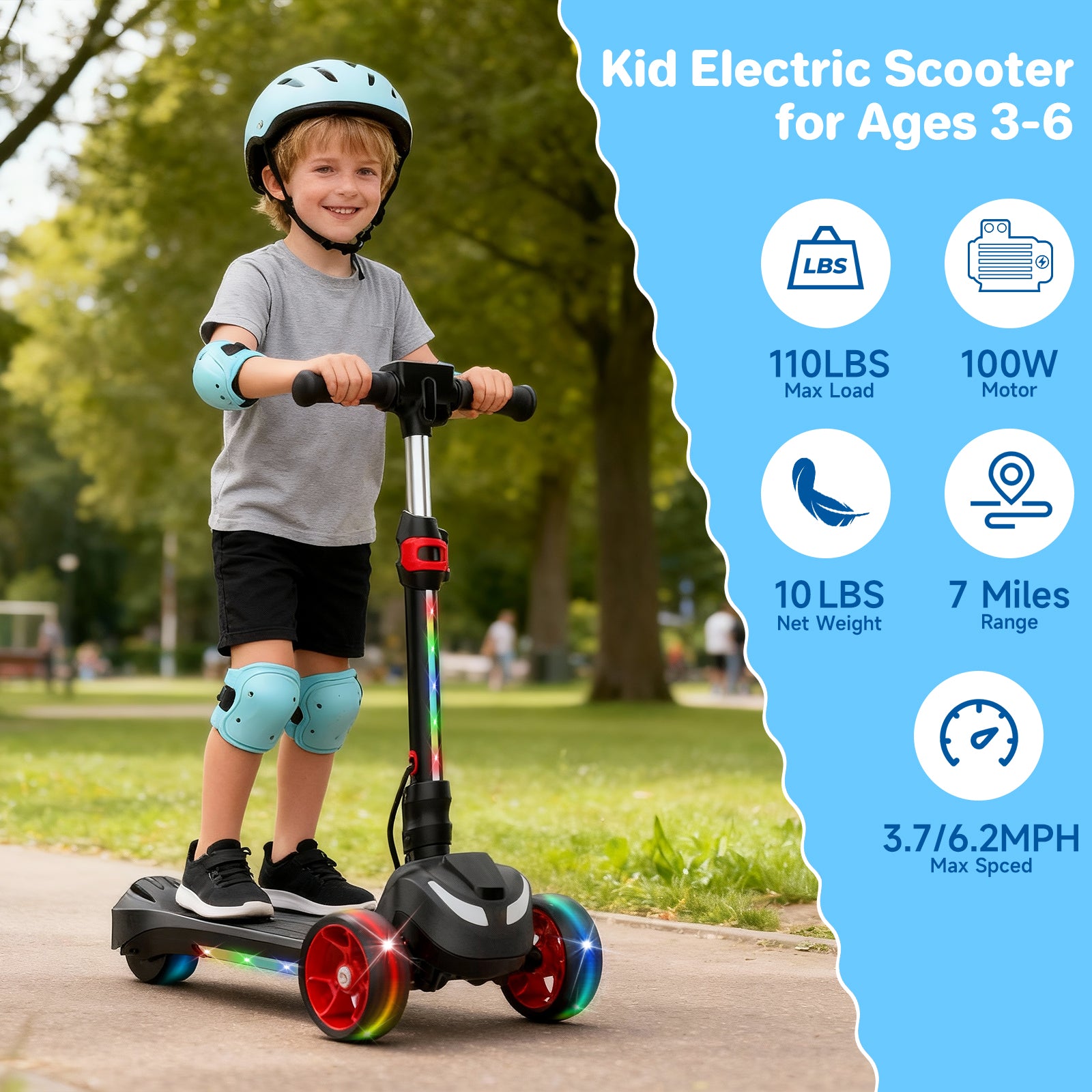 iScooter Electric Scooter for Kids 3-6, Bluetooth Music Speaker, Light-Up Wheels & Pedal, Thumb Accelerator, Adjustable Height, 3-Wheels Toddler Motorized Scooters for Boys Girls