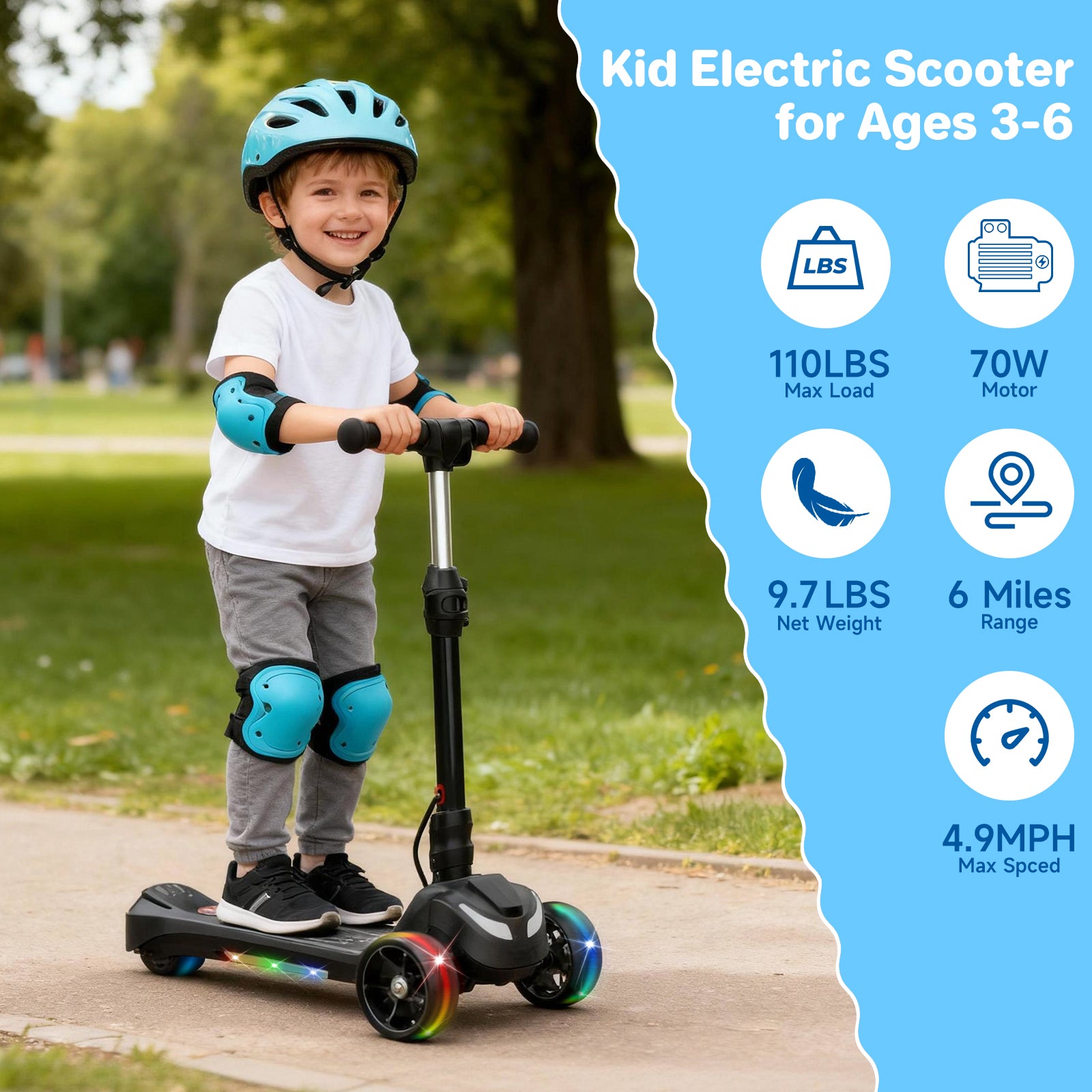 iScooter Electric Scooter for Kids 3-6, Light-Up Wheels & Pedal, Thumb Accelerator, Adjustable Height Toddler Motorized Scooters, 3-Wheels Escooter for Boys Girls
