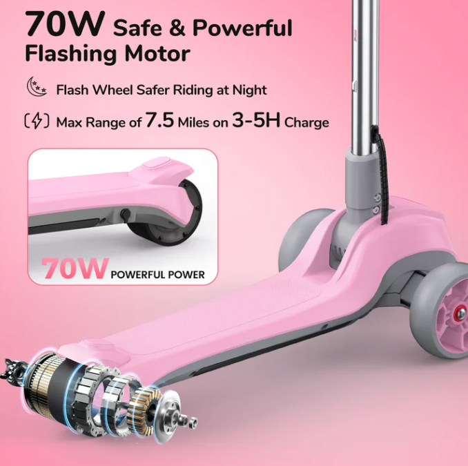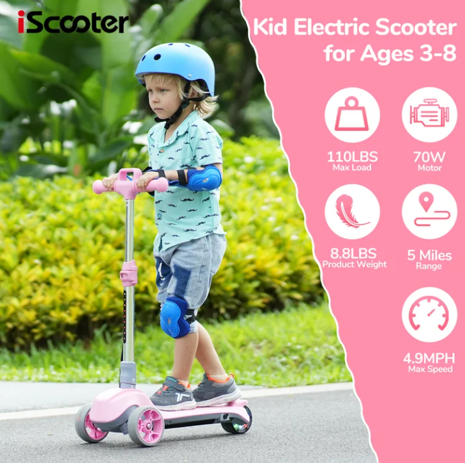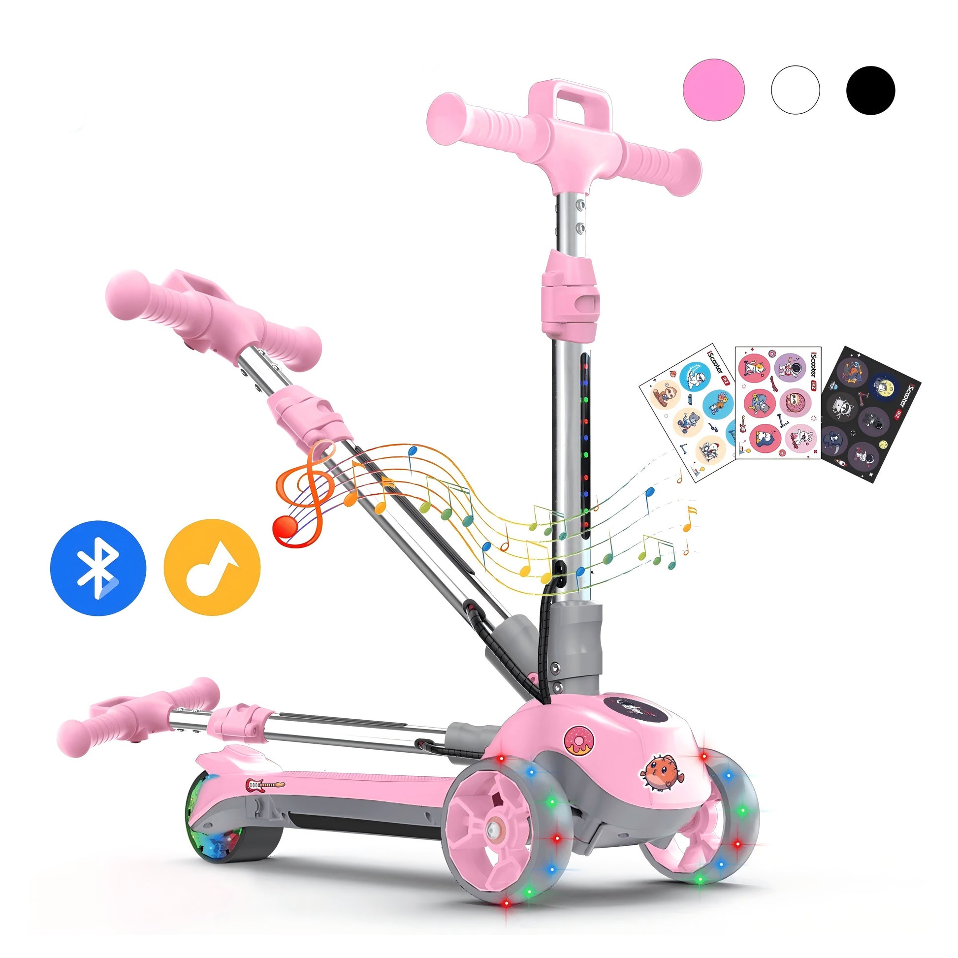 iScooter Electric Scooter for Kids Ages 3-6, Bluetooth Music Speaker, LED Light-up Wheels, Thumb Accelerator, 3-Adjustable Height Toddler Motorized Scooters, 3-Wheels Electric Scooter for Girls/Boys