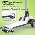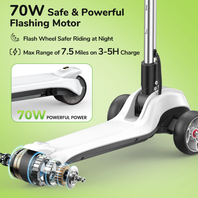 Lean To Steer Mechanism Desgin: Helps your child develop balance skills, coordination, and more. This electric scooter features easy maneuvering with lean-to-steer technology, which means the kid scooter is controlled by leaning rather than turning the steering wheel.