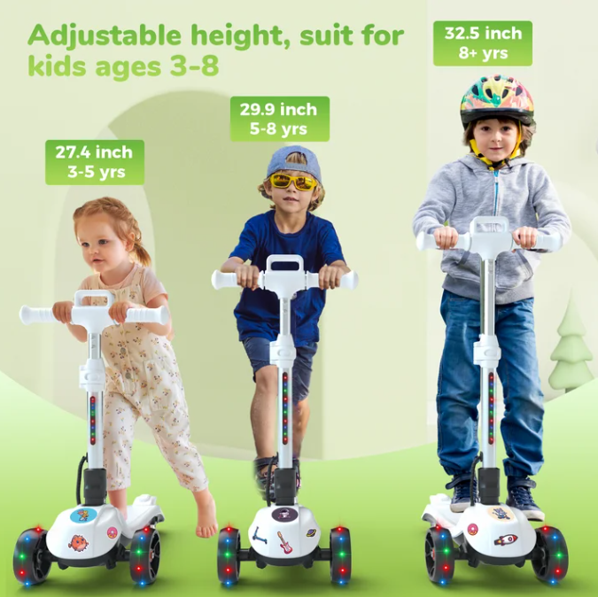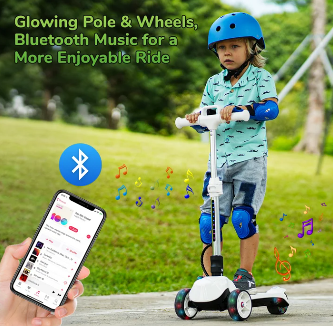 iScooter Electric Scooter for Kids Ages 3-6, Bluetooth Music Speaker, LED Light-up Wheels, Thumb Accelerator, 3-Adjustable Height Toddler Motorized Scooters, 3-Wheels Electric Scooter for Girls/Boys