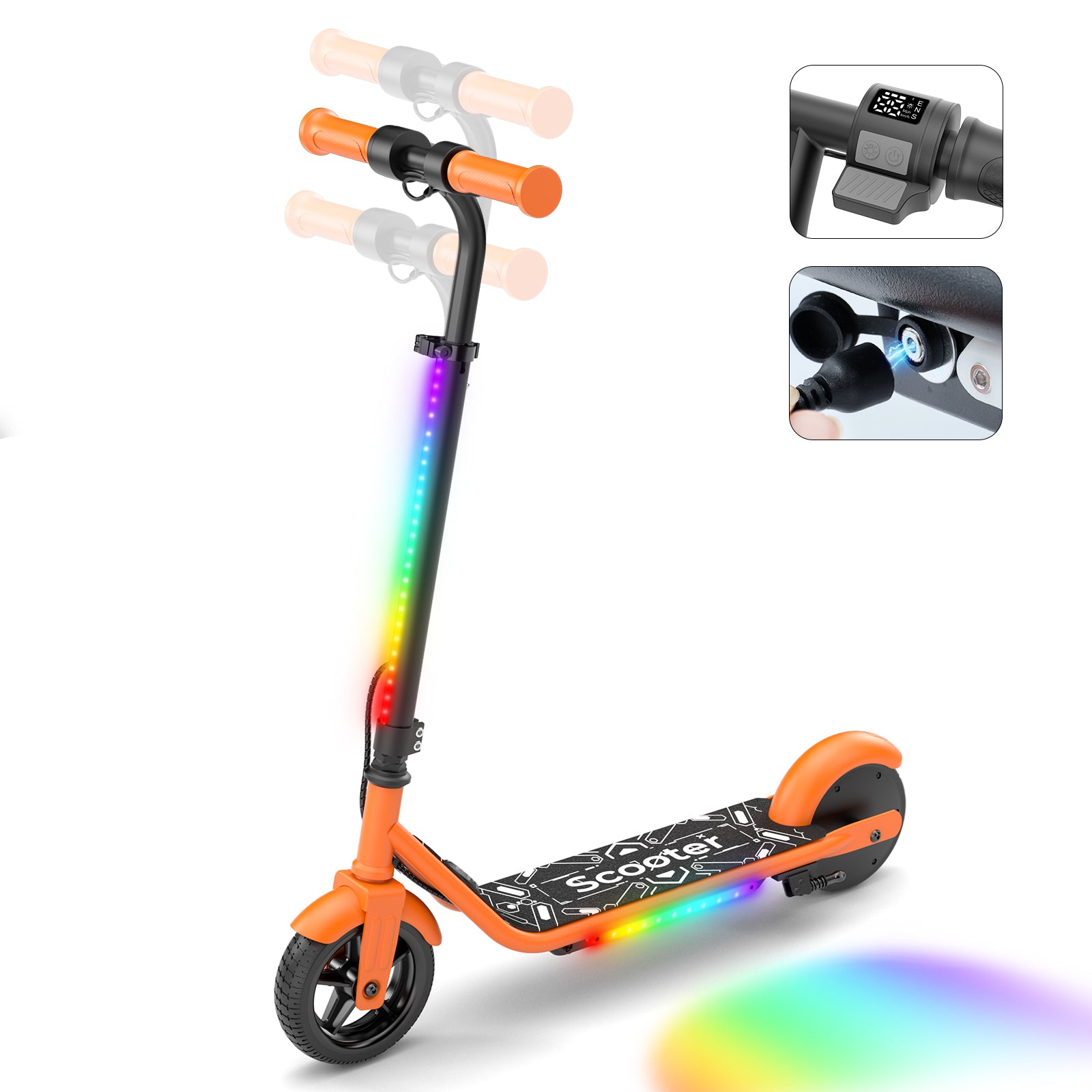 iScooter Electric Scooter for Teens Kids 6-12, Up to 9KM Miles 10 MPH MAX, Kids Escooter with 3-Speed & 3-Modes of Lighting, Dual Breaking & Adjustable Height E-Scooter for Boys Girls Orange