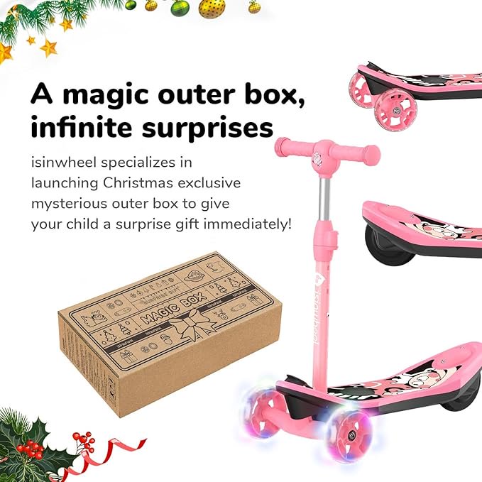 Safety & Comfortable: isinwheel mini electric scooter for kids will only glide with a speed of 8.5 mph and comes with a rear brake. The kids just need to step on the brake pad to stop the scooter safely and the comfortable rubber handlebar grips offer your kids increased grip, for the ultimate control and safety.