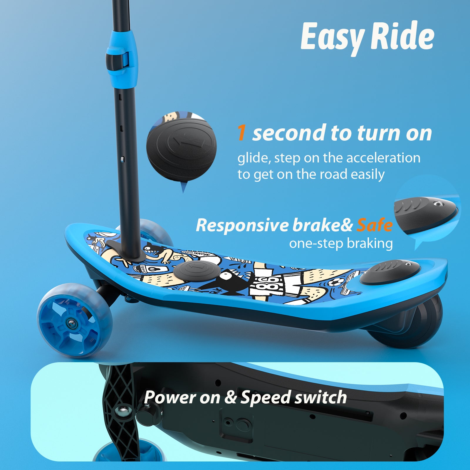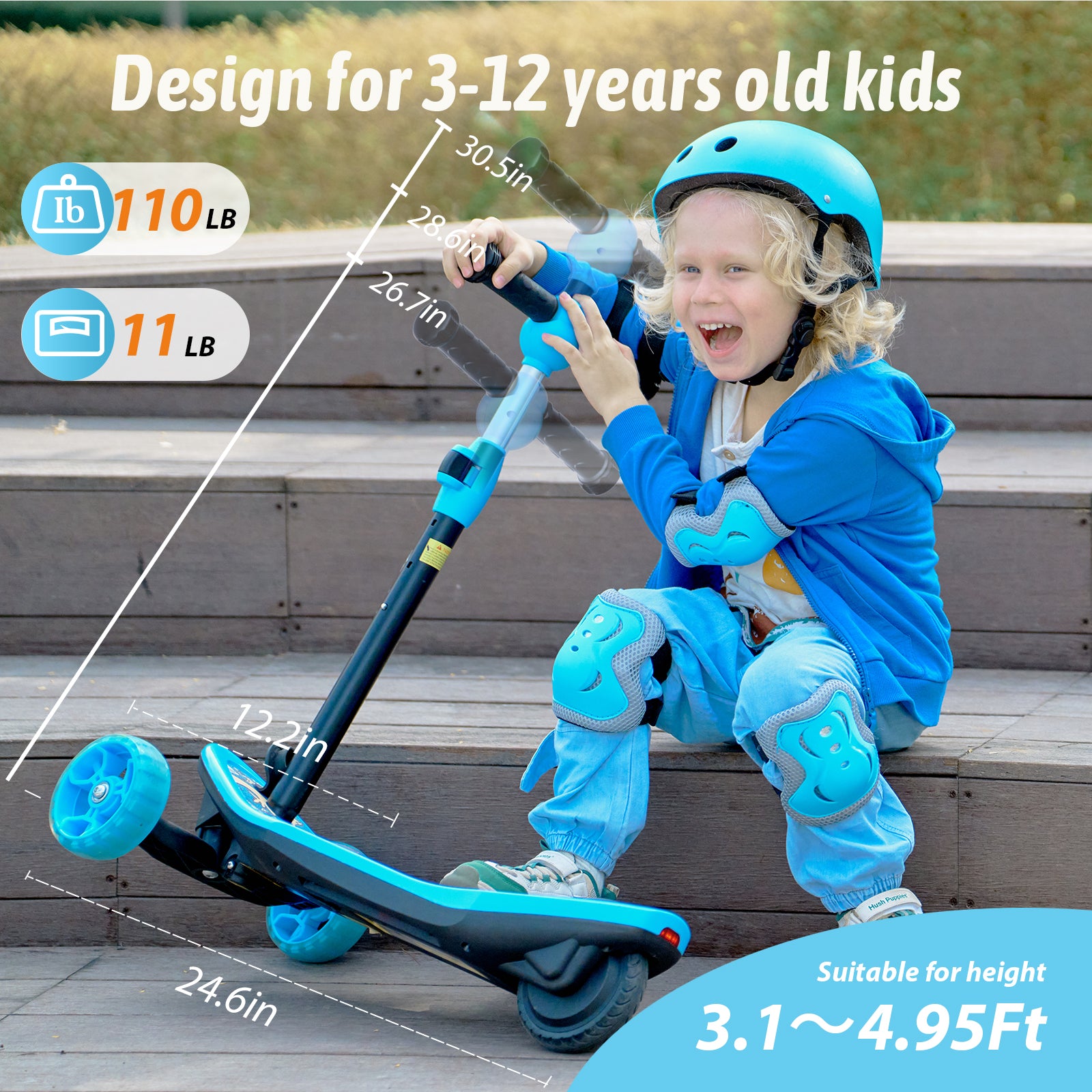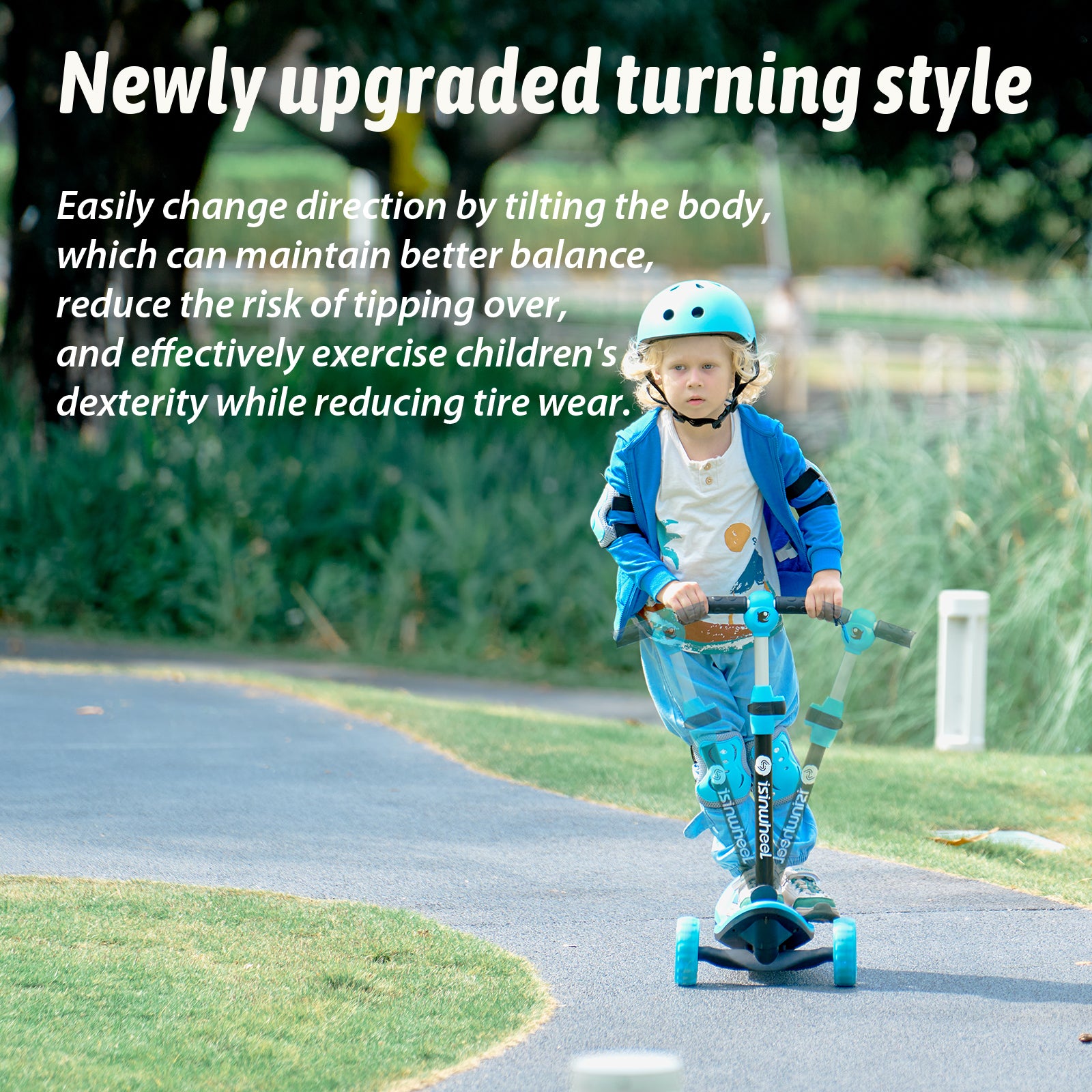 iSinwheel Kid 3 Wheel Electric Scooter, Height Adjustable Folding Pedal Scooter for 3-8 Years Old with Flashing Wheels for Boys and Girls Blue