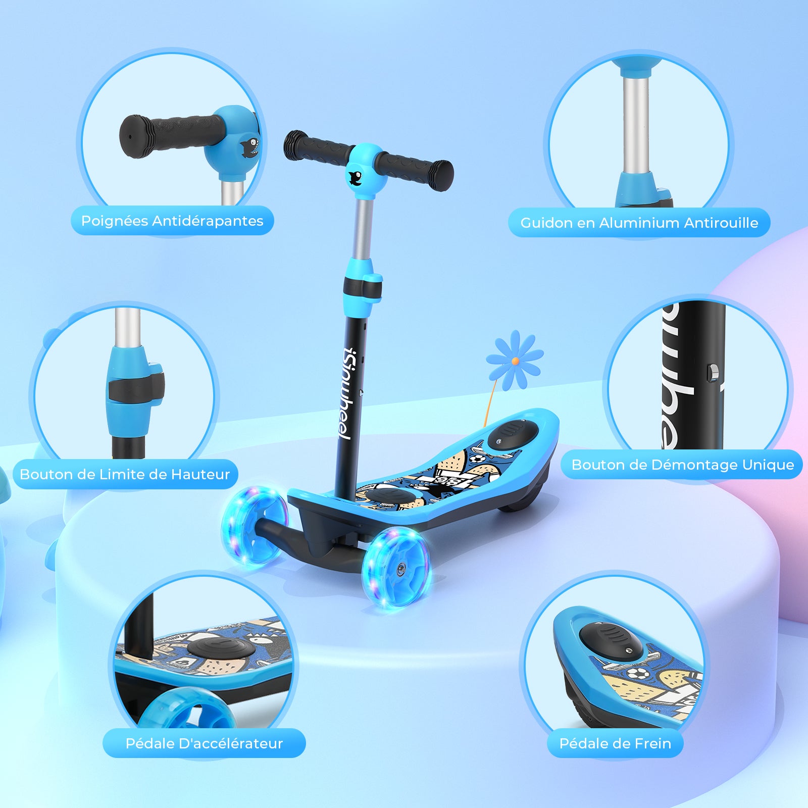 isinwheel Kid 3 Wheels Electric Scooter, Height Adjustable Foldable Kick Scooter for Kids Ages 3-12 with Flashing Wheels for Boys Girls Blue