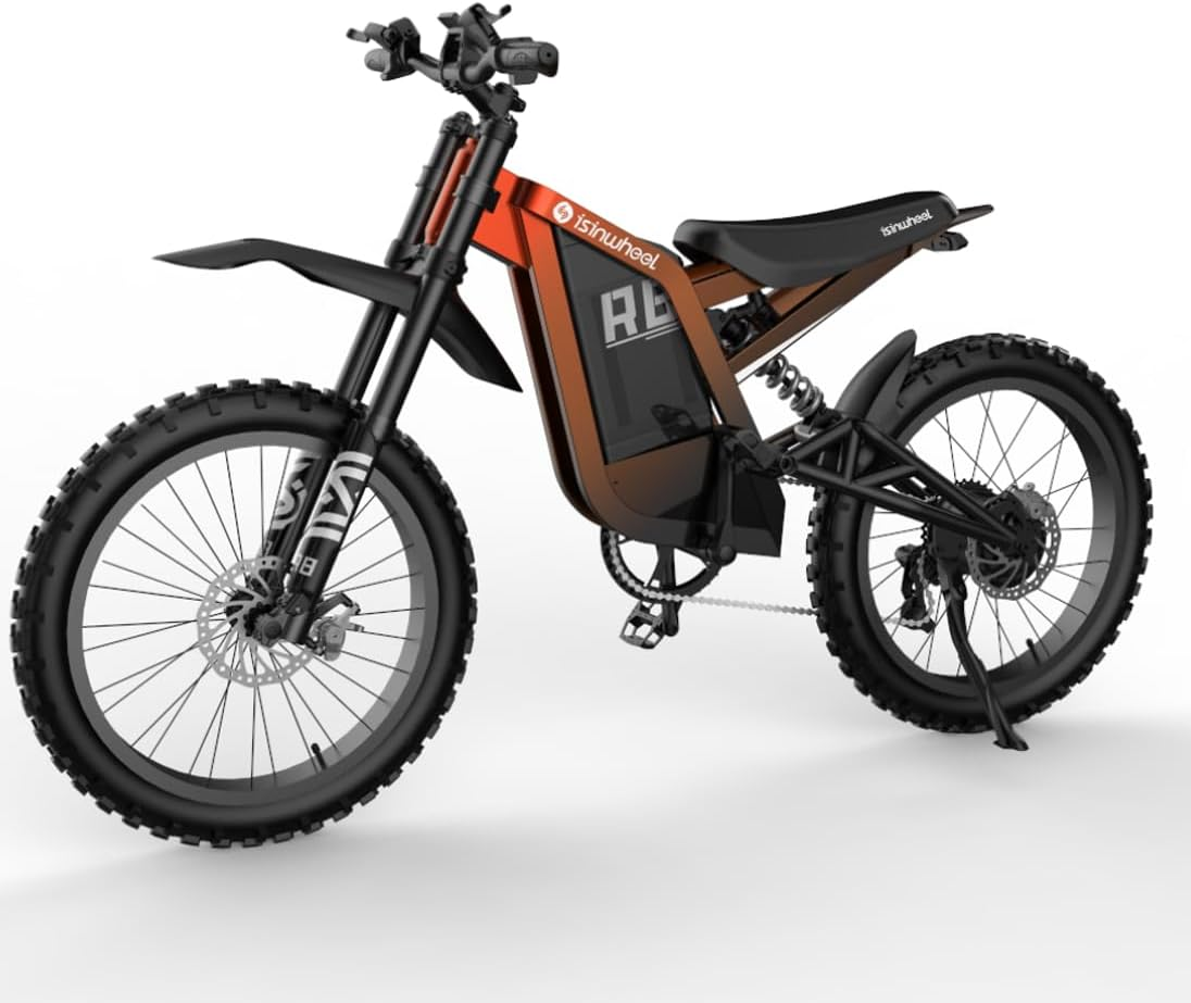 Isinwheel R8 Electric Bike for Adult,Peak 2000W Motor 48V 27Ah Battery Up to 35 MPH & 150 Miles Electric Dirt Bike,NFC LCD Display All Terrain Fat Tire Motorcycle Full Suspension Moped E-bike
