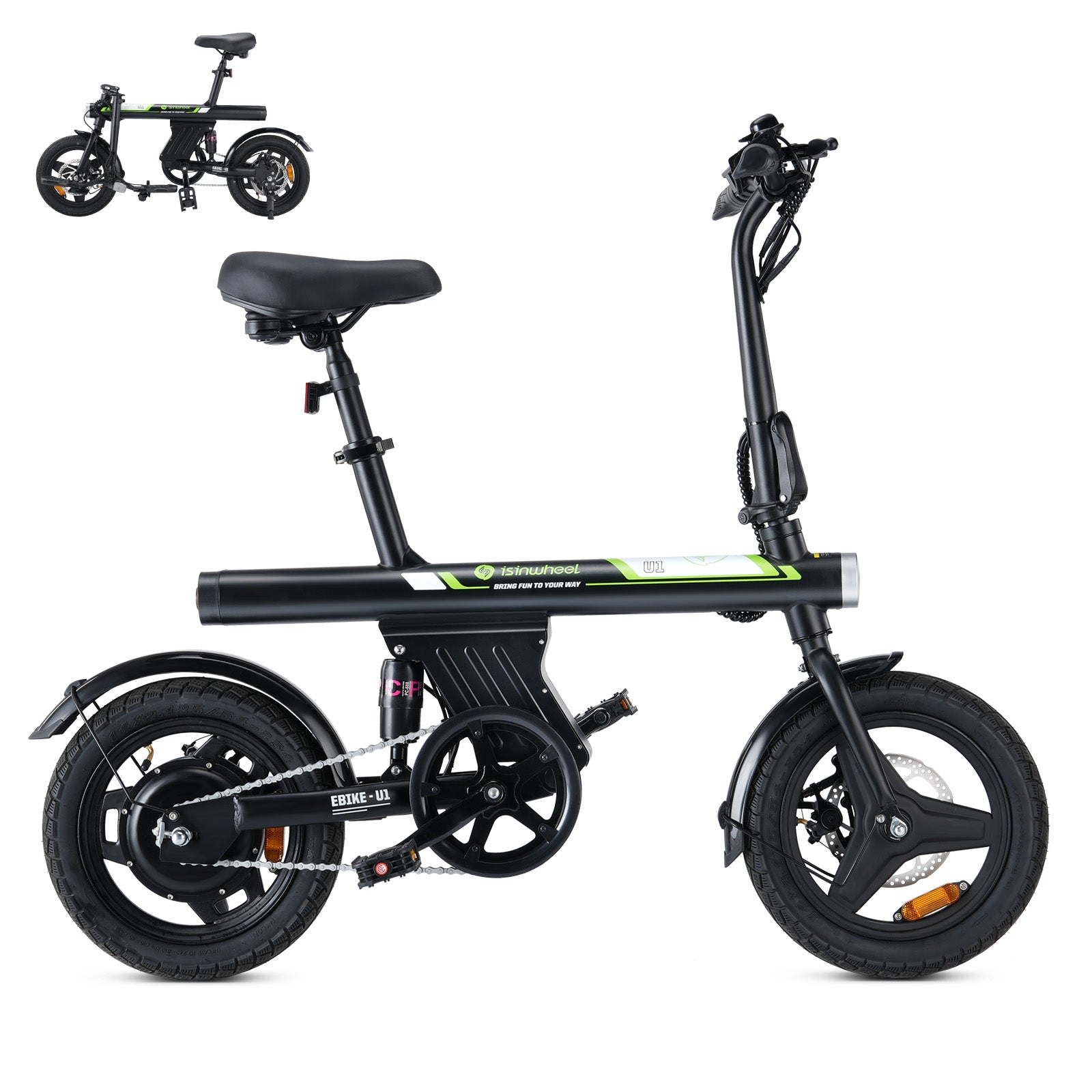 iSinwheel W-U1 500W Folding Electric Bike for Adults, 25 Miles Long-Range Battery, Rear Suspension, 3 Assist Levels - 14" Foldable eBike for Adults And Teens Black