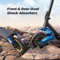 - 【Advanced Suspension & Off-Road Tires】 Designed for maximum comfort and stability, S10Max electric scooter adults features a front swing arm and rear spring suspension system. The 10-inch off-road pneumatic tires provide excellent shock absorption and grip, ensuring a smooth ride on uneven and rough terrains. This advanced suspension allows electric scooter to handle various surfaces with ease, enhancing overall ride quality.