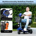 - Convenience Features: The X01 mobility scooter for adults comes equipped with a detachable storage basket featuring handles – perfect for carrying your essentials. Easily remove it to use as a shopping basket. A fixed cup holder on the tiller securely holds your beverage for easy access. Plus, a built-in USB charging port lets you power your phone on the go using your own cable – a great companion for daily outings.