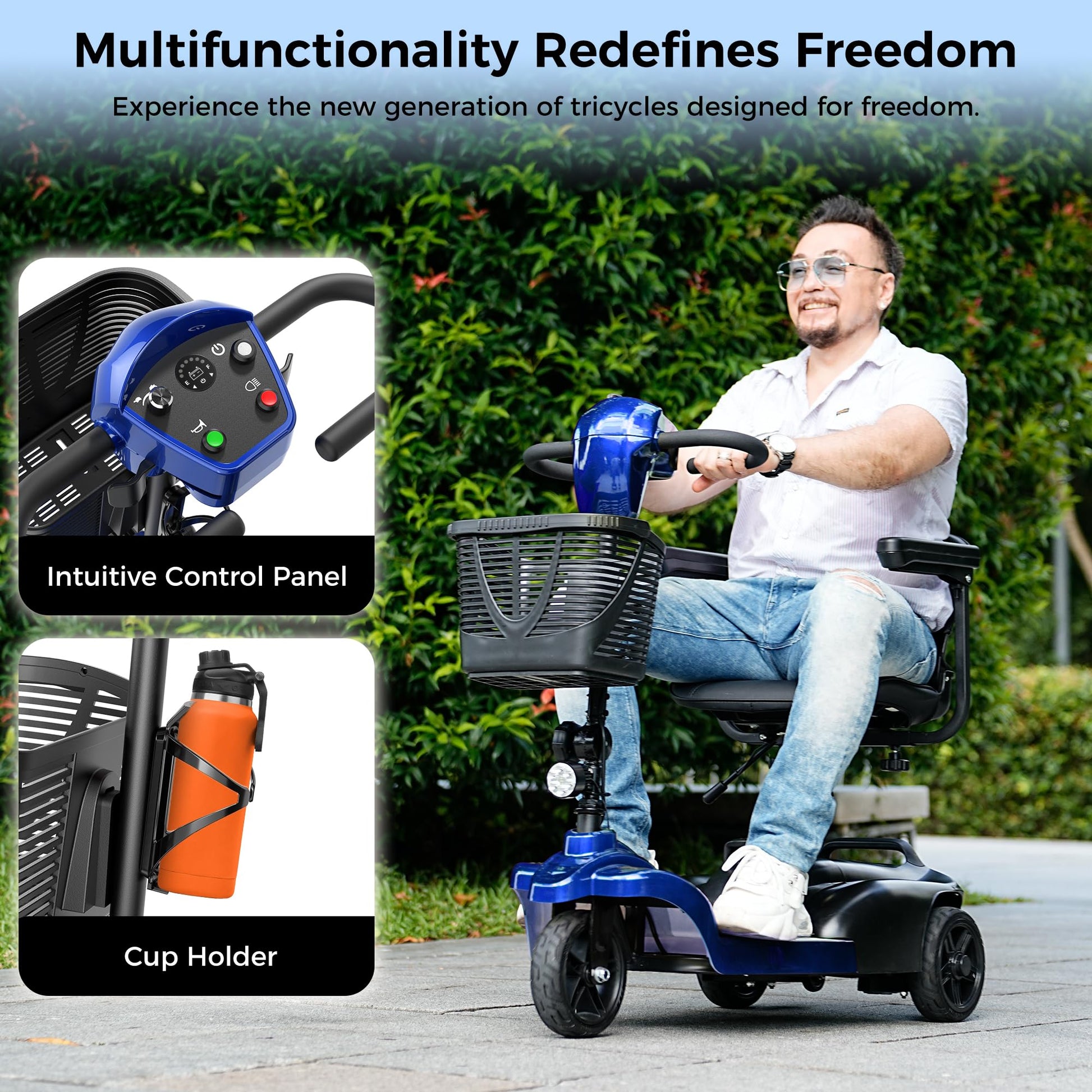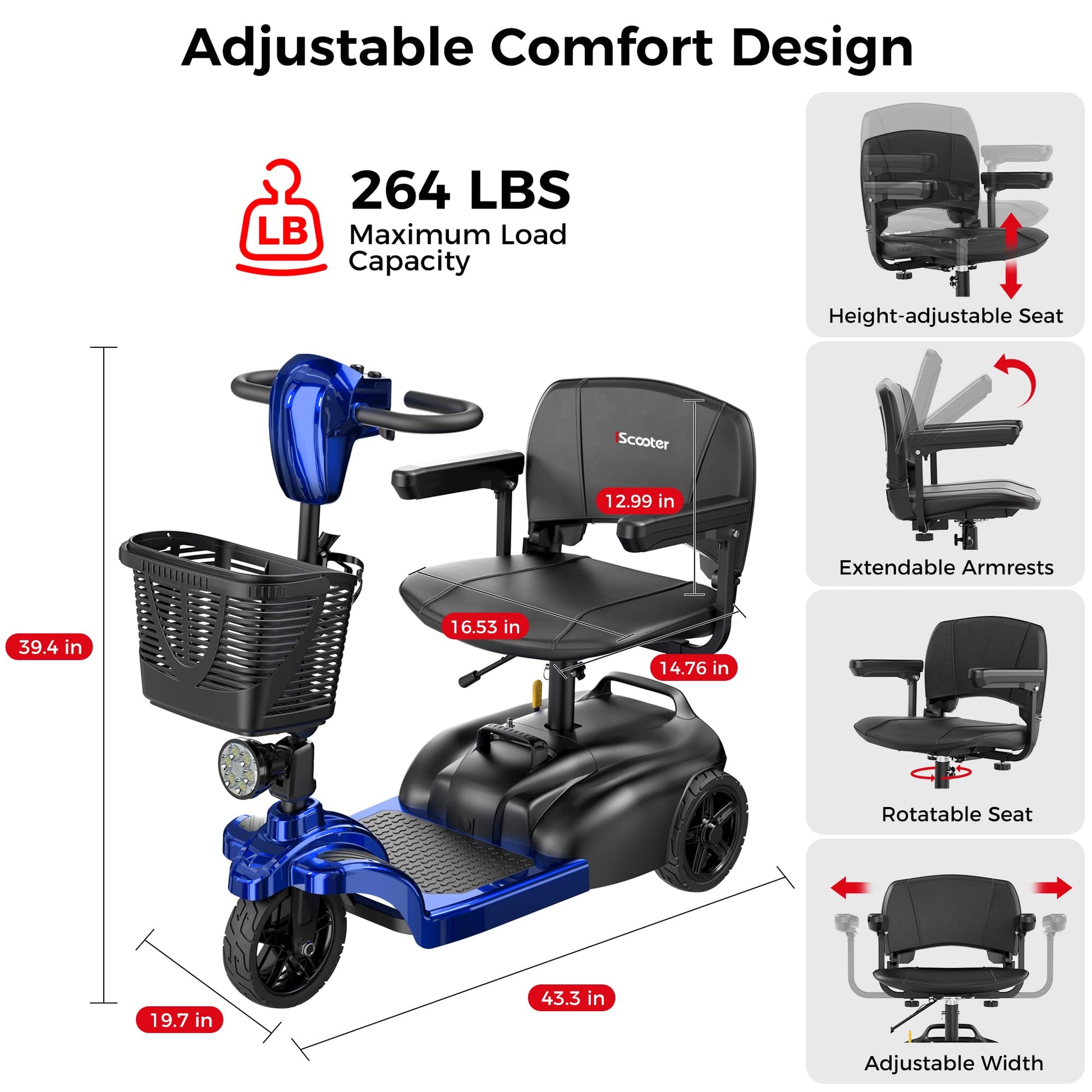 iScooter X01 Mobility Scooter, 3-Wheel Mobility Scooters for Adults Seniors, Powered Electric Wheelchair Device with Seat, Detachable Basket, Cup Holder, LED Headlight, 264 lbs Capacity, Lightweight